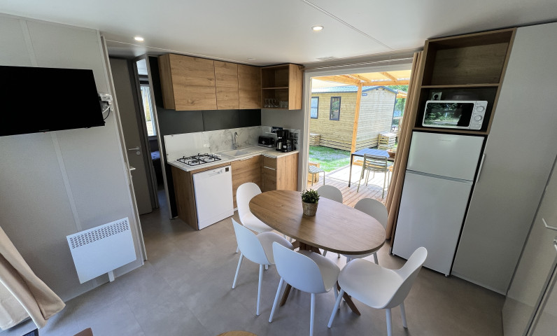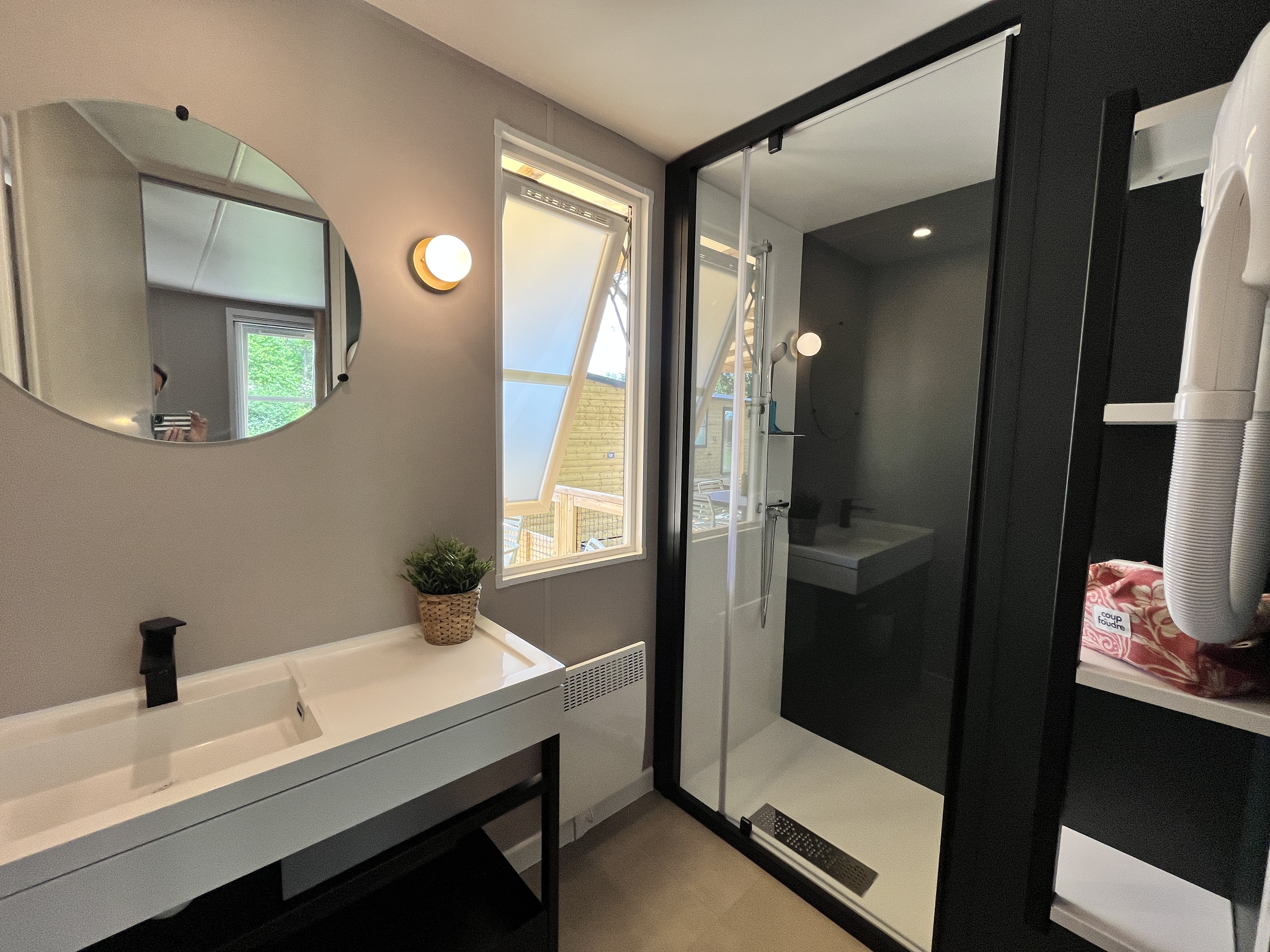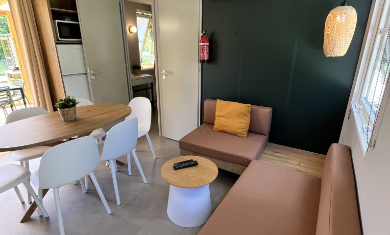 Treat yourself to a unique getaway in the heart of a 4-star campsite in Sologne with the Cottage Prestige 6 people côté jardin. With a breathtaking view of the lake, this accommodation combines natural charm and high-end services for a memorable holiday near the Châteaux of the Loire and the Loire Valley.
