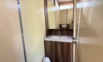 Each pitch features its own private sanitary unit, including a bathroom with a shower, toilet and sink, as well as a kitchenette area with a sink (please note: the fridge is not included, but can be rented with this type of private facility).