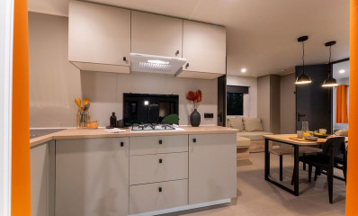 Pour des nuits paisibles, les 2 chambres offrent un aménagement optimal : une chambre parentale avec un lit double (140x190cm) et une chambre équipée de deux lits simples (80x190cm). Un couchage supplémentaire peut accueillir un cinquième voyageur, parfait pour une famille ou un groupe d’amis.