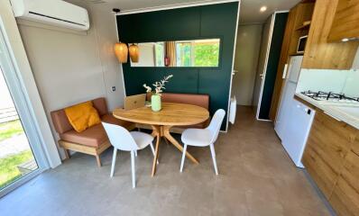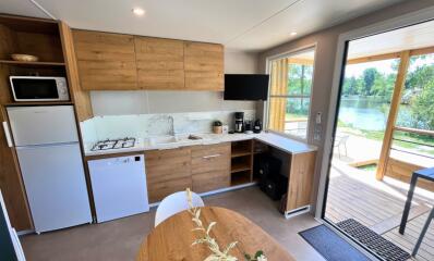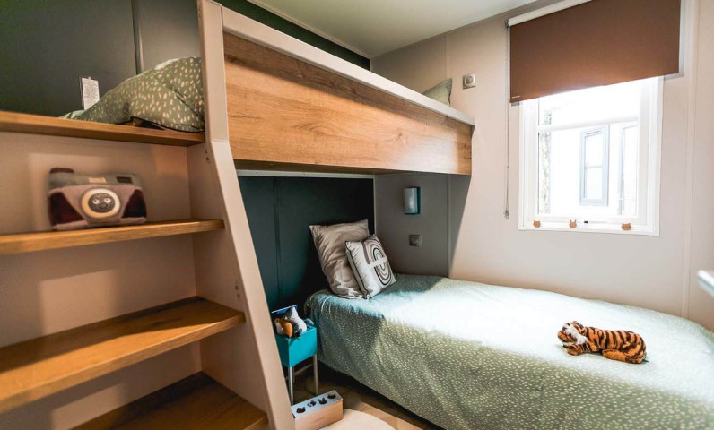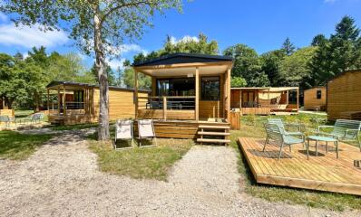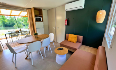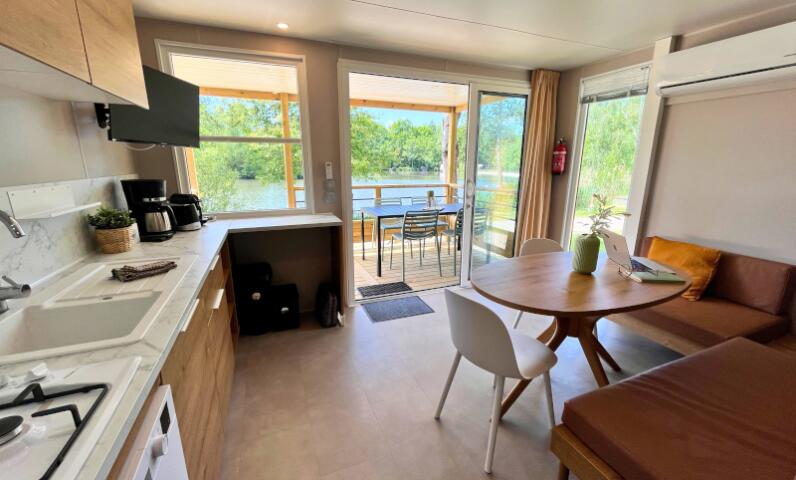 Découvrez le charme de la Sologne avec le Cottage Prestige Plus 2 chambres pour 4 personnes, un hébergement idéal pour des vacances reposantes dans un camping 4 étoiles. Offrant une vue apaisante sur l’étang, ce cottage de 28m² associe confort moderne et proximité avec la nature.