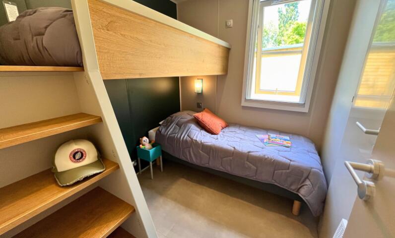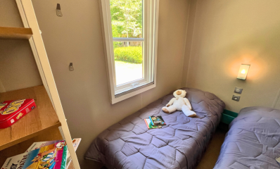 - 2 chambres : une chambre parentale avec un lit double (140x190cm) et une chambre avec 2 lits simples (80x190cm), idéales pour un séjour en famille ou entre amis.