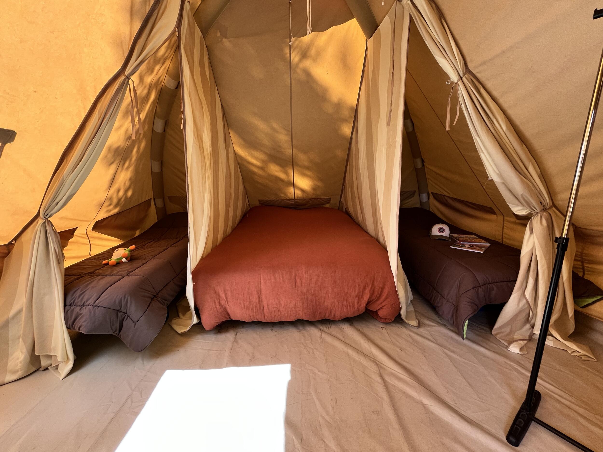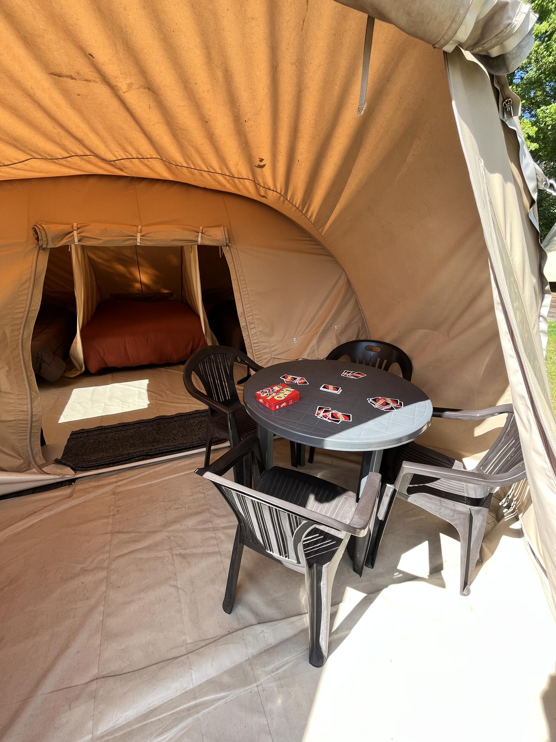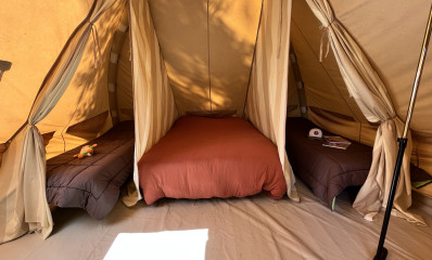Située dans un camping 4 étoiles à Nouan-le-Fuzelier, au cœur de la Sologne, cette tente est spécialement conçue pour accueillir les familles et groupes d’amis en quête d’une pause en pleine nature. Avec le label Accueil Vélo, nous mettons tout en œuvre pour répondre aux besoins des cyclotouristes.