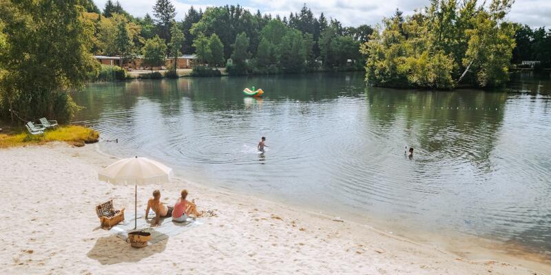Dit zandstrand met beschermd zwemgedeelte is exclusief voorbehouden aan onze kampeerders en de toegang is volledig gratis.