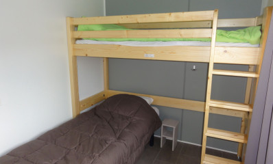 Een slaapkamer met een eenpersoonsbed (80x190 cm) en een hoog bed (70x190 cm), ideaal voor kinderen of een metgezel.