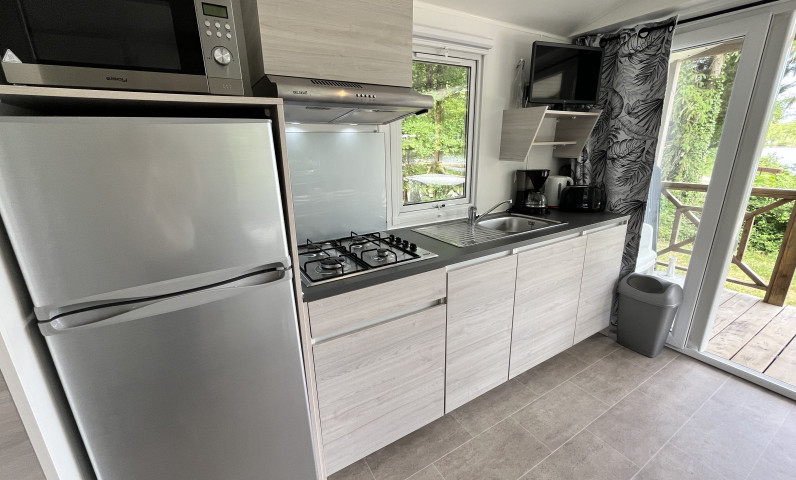 Deze prestigieuze stacaravan met 2 slaapkamers is de ideale accommodatie voor een gezin van 4 personen op zoek naar comfort en natuur. Breng actieve dagen door met het ontdekken van de wonderen van de regio en kom dan samen voor gezellige momenten op uw terras, rond een barbecue of een familiebordspel.
